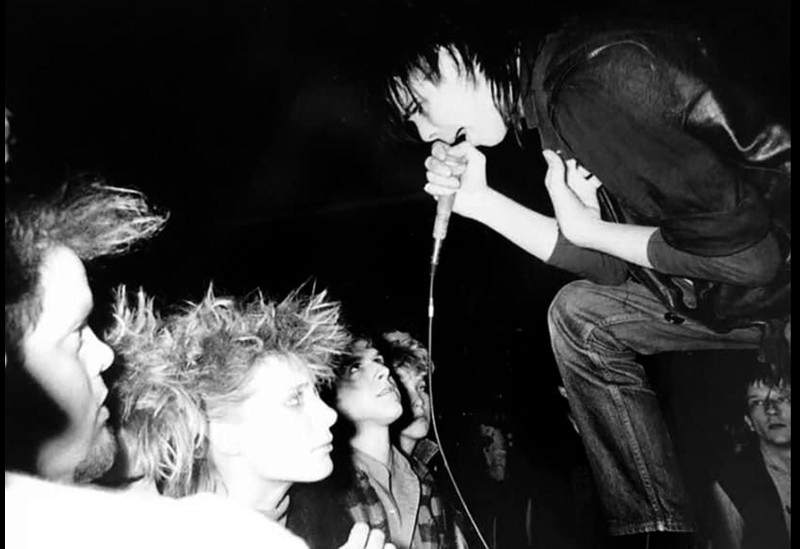 19-Mar-83 Photo 1: Credit Steinar Buholm. Nick Cave's left hand is bandaged as a result of a fight with an audience member at The Lyceum, London concert on 07-Mar-83. |