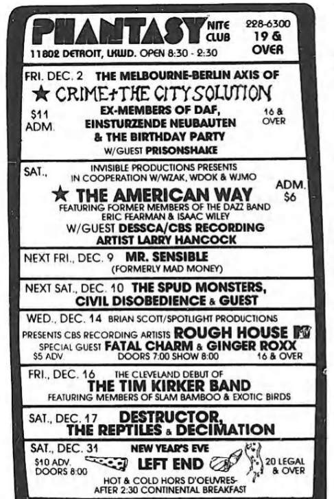 22-Aug-79 29-Aug-79 05-Sep-79 12-Sep-79 19-Sep-79 26-Sep-79 03-Oct-79 10-Oct-79 Note: The Wednesday night residency continued. |