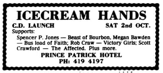 02-Oct-93 AU Melbourne-Collingwood,Prince Patrick Hotel [support for Icecream Hands, with Spencer Jones, Rob Craw,..]