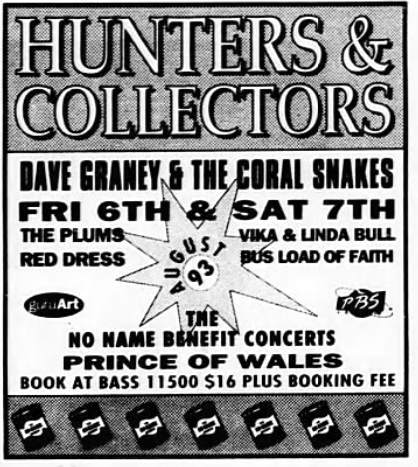 07-Aug-93 AU Melbourne-St.Kilda,Prince of Wales [support for Hunters & Collectors, with Dave Graney and the Coral Snakes]