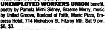 19-Jun-92 AU Melbourne-Fitzroy,The Empress Hotel Unemployed Workers Union benefit