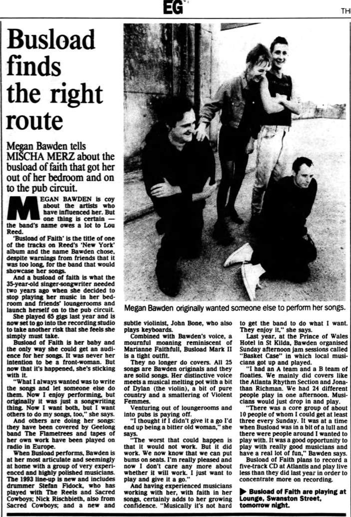1994-2025 After Busload of Faith ends, Megan Bawden continues making music to this day Women in Music (St Kilda).
