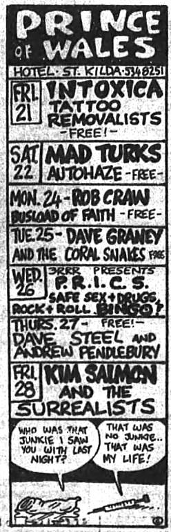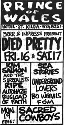 16-Aug-91 AU Melbourne-St.Kilda,Prince of Wales [support for Died Pretty, with Kim Salmon and the Surrealists, Ripe and Autohaze]