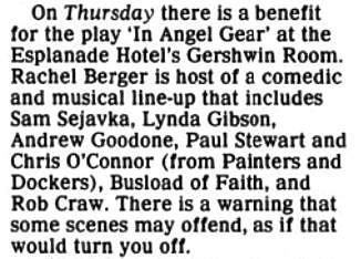 16-Jan-92 AU Melbourne-St.Kilda,Esplanade Hotel-Gerschwin Room Benefit for the play "In Angel Gear" [with Sam Sejavka, Rob Craw, etc..]