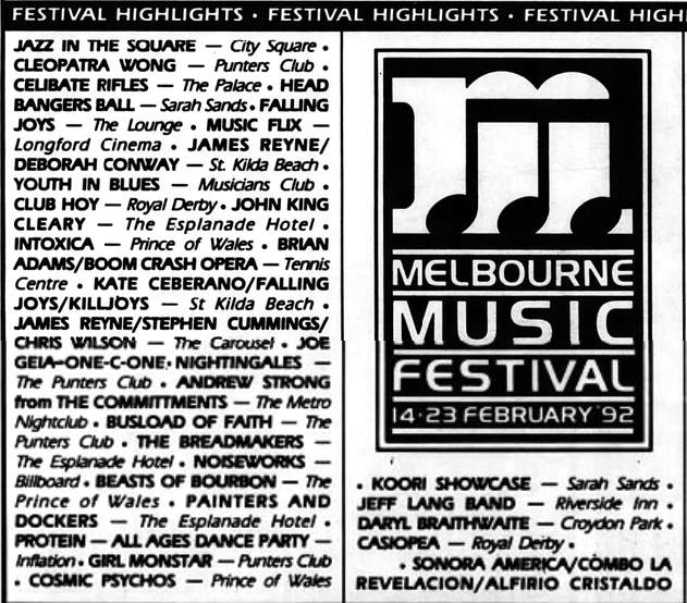 19-Feb-92 AU Melbourne-Fitzroy,Punters Club [with Nude Rain] Melbourne Music Festival