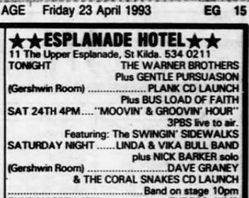 23-Apr-93 AU Melbourne-St.Kilda,Esplanade Hotel-Gershwin Room [with Plank]