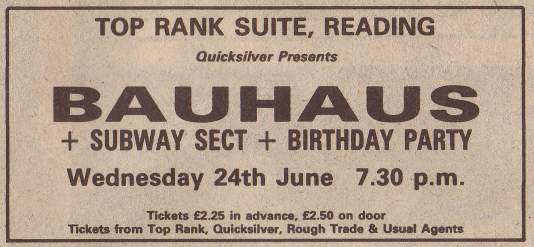 0x-Jun-81 Note: Their first UK gig outside of London (28 miles). |