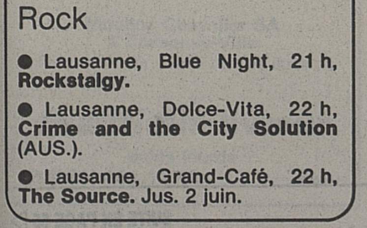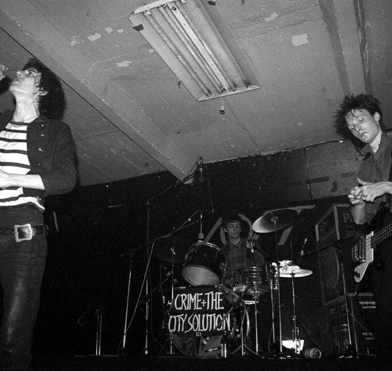London late 1984. Ex-Birthday Party member Rowland S.Howard is recruited on guitar. After the demise of the Birthday Party in August 1983 Rowland had done basically nothing, except for guesting with Fad Gadget on stage at the Royal Albert Hall, London (on 30-Sep-83 and 01-Oct-83) in support of Siouxsie and the Banshees, joining the same Fad Gadget for the recordings of his "Gag" album in November 1983 and finally guesting at two Kas Product live concerts in France in April 1984. His brother Harry joins Crime on bass. Harry had replaced Tracy Pew in The Birthday Party at several UK live concerts during April/May 1982 when Tracy was serving time in an Australian prison. Epic Soundtracks (a.k.a. Kevin Paul Godfrey) [of Swell Maps, Red Crayola and Mute Records employee] will only join on drums as of their first live gigs in May 1985. During the life span of Crime and the City Solution (1985-1991), Mick Harvey continues to play an important role in Nick Cave's Bad Seeds. He is deviding his time between Bad Seeds and Crime. As a consequence, Crime only functions around Harvey's other commitments. |