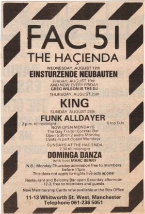 Sep-81 Mark Chung (then still in Abwärts) joins the band. Alex Hacke (then only 15/16) is sent on a 'holiday' because he's too young and wild. He will operate from behind the mixing desk at concerts only.