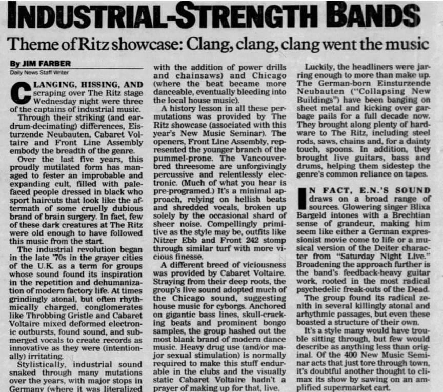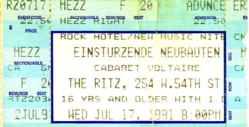 17-Jul-91 US NY,New York City,The Ritz,New Music Seminar [with Cabaret Voltaire & Front Line Assembly]