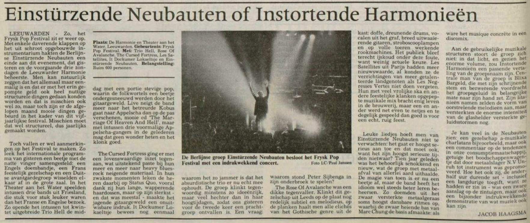 Review: Scan of review, taken from Nieuwsblad van het Noorden xx-Sep-91.