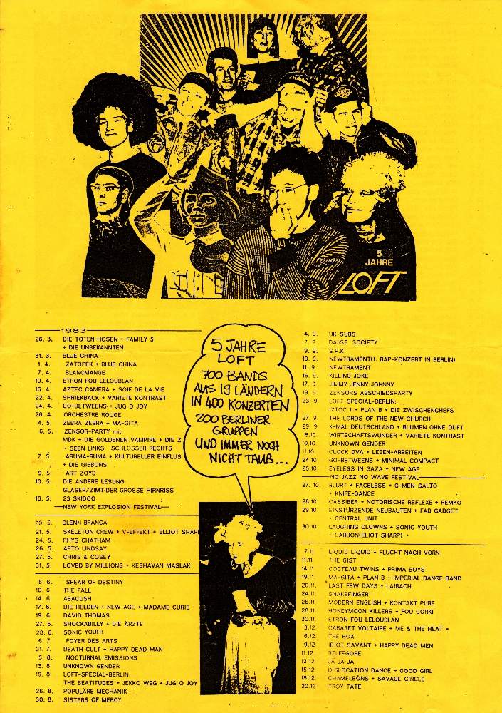 Note 2: SO36, a former cinema, turned into a Penny discount super market in 1967, opened as a music venue on 11-Aug-78 by new owners Achim Schächtele, Klaus-Dieter Brennecke and Andreas Rohè. By Jan-79 artist Martin Kippenberger took over Brennecke's share. All three sold the place in summer of '79 to Hilal Kurutan (from Turkish origin), who reopened it as Merhaba ("Good day" in Turkish) SO36 in Nov-79, booking concerts together with Michael Schäumer, Michael Voigt (Monogam Records/People's Records) and Burkhardt Seiler (Zensor records) as well as organising Turkish events, until end of Mar-83, when building regulations forced Hilal to shut the venue down. It was sold/reopened/refurbished several times throughout the next decades and is still active to this day. (More reading in the brilliant "SO36 – 1978 bis heute" bi-lingual book, Ventil Verlag, 2016).