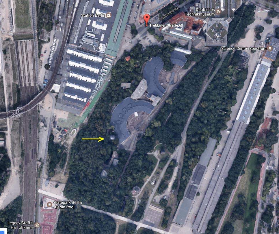 Note 3: Exact location is where Saarstraße crosses the Autobahn (A103), at the Zehlendorf junction. The plaque (visible in the "Liebeslieder" film) was a mockup made for the film. They removed it after the filming, and now it is at Andrew's place.
