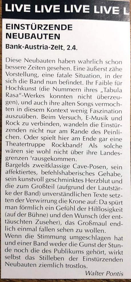 17-Jun-93 Note: Re-scheduled to 11-Sep-93, because Blixa Bargeld was touring with The Bad Seeds. |