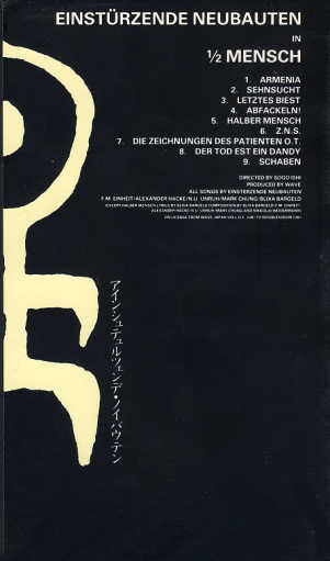 Notes: Line-up: Blixa Bargeld, N.U.Unruh, FM Einheit, Marc Chung & Alex Hacke. The film premiered in Tokyo on 25-Nov-85. (*)Also available on the "Strategies Against Architecture II" compilation album.
