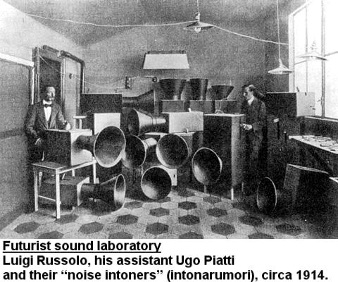 Note 2: The set was a replica of Luigi Russolo's Futurist sound laboratory. The band members were dressed and 'coiffed' like Luigi.