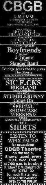 24/25-May-77 US NY,New York City,CBGBs [with Uncle Sun, The Werewolves]