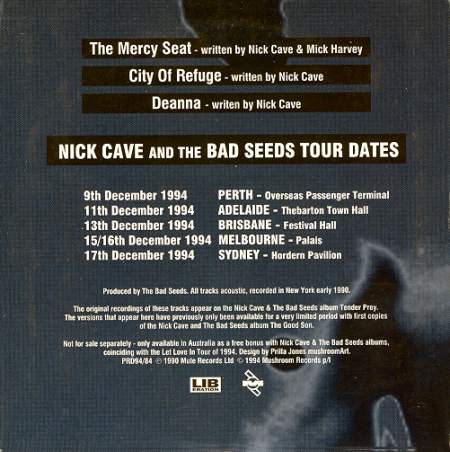 Note: Free with initial copies of "The Good Son" LP/CD (Mute UK/DE, 1990).
