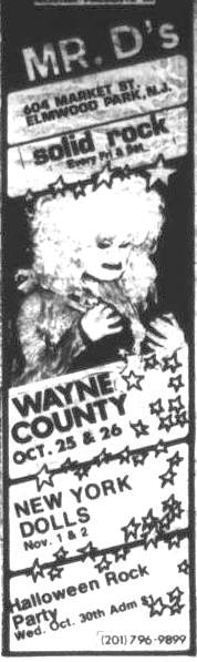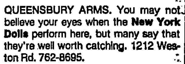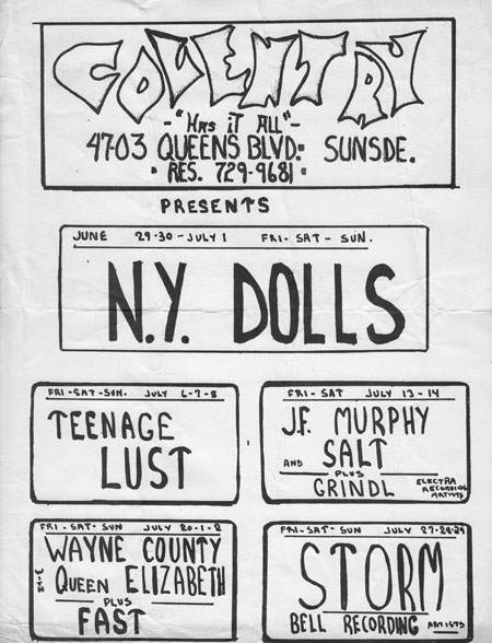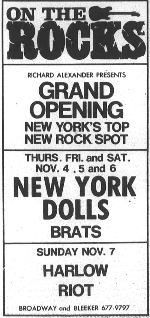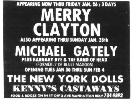 Note 1: Start of a Tuesday night residency (at 9:30PM). Billed as "The Dolls of N.Y." The Dolls would be performing on 14 Tuesdays, between June and October, 1972.