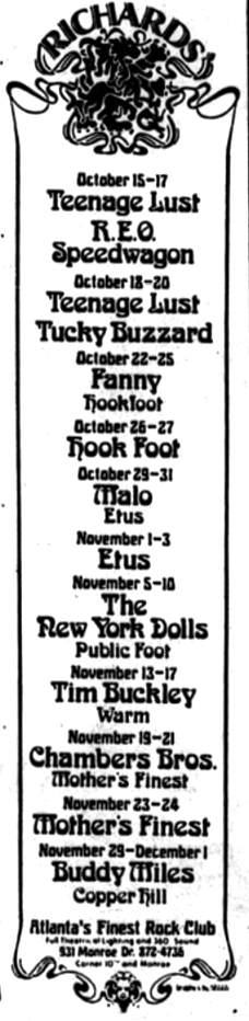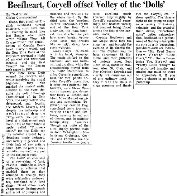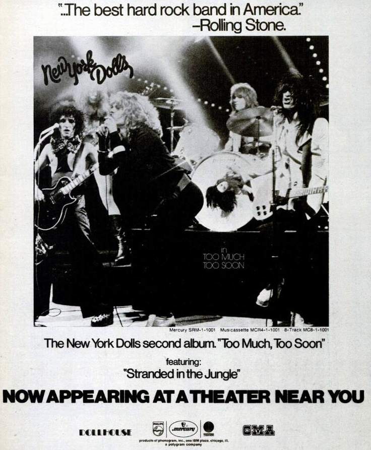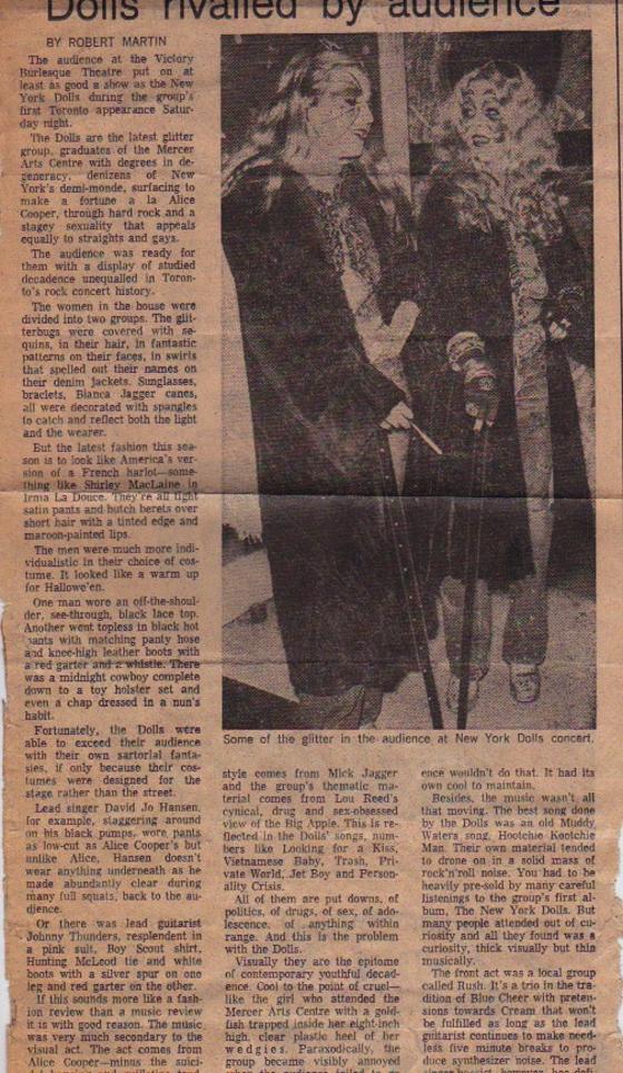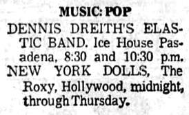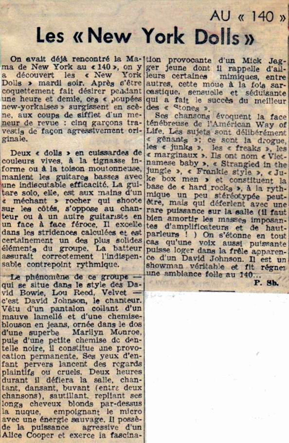 Note 2: Roy Hollingworth, from UK weekly Melody Maker, attends and writes his first piece about the Dolls. "You wanna play house with the Dolls" published in Melody Maker 22-Jul-72. Roy had just turned 23 and would die on March 9, 2002 at the age of 52.