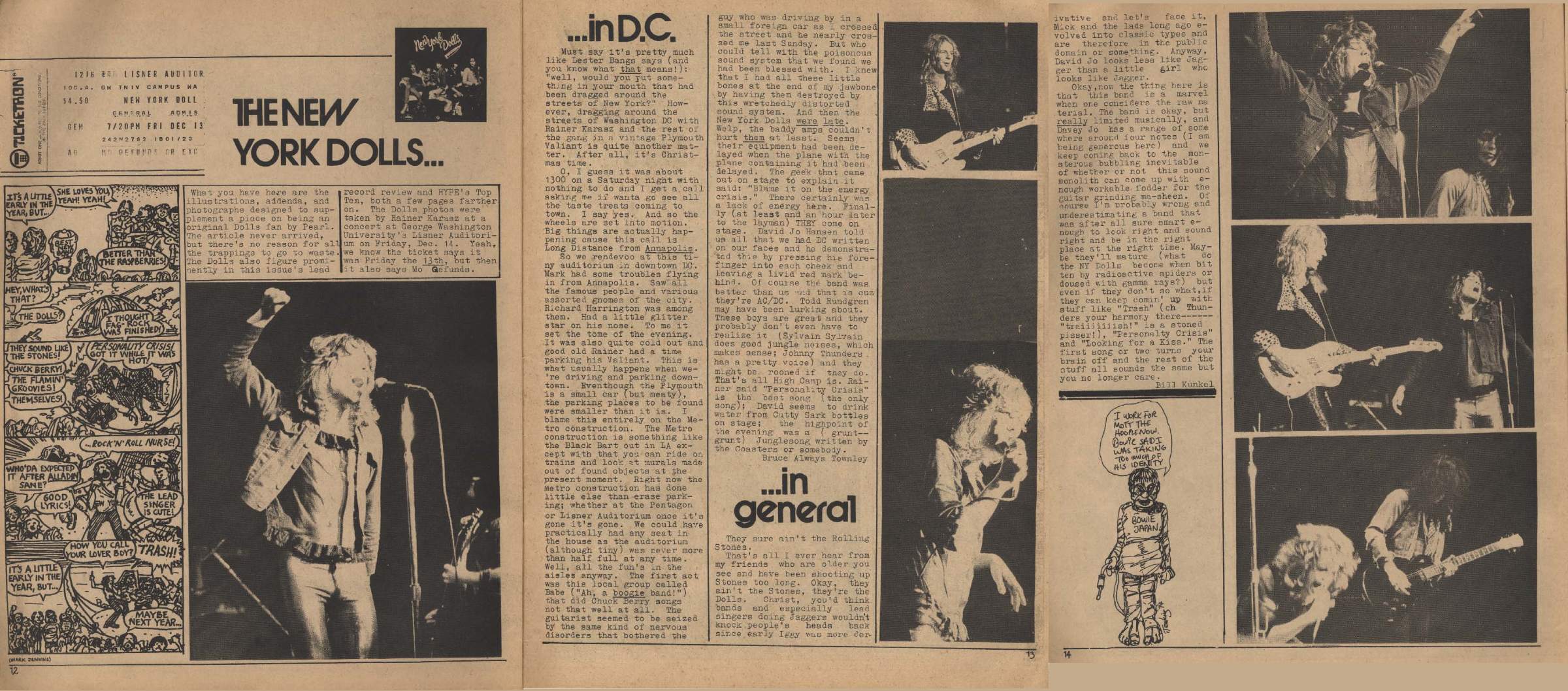 From an unknown newspaper: "The Dana Beal benefit at the Hotel Diplomat was beautiful people getting together and having a good time and helping to free a brother at the same time. [...] Anyway Teenage Lust played some great rock and roll while the lead singer of [the] Dolls just blew everyone out."