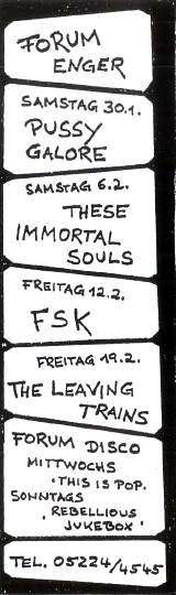 17-Nov-93 Note: Chris Hughes [True Spirit] is flown in from Berlin (on Mute's expenses) and borrows Here's drum kit. Likely to be the band's last gig before returning permanently to Melbourne, except for Chris who returned to Berlin. |
