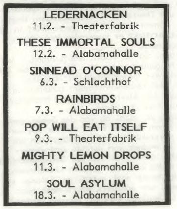 15-Feb-88 17-Feb-88 18-Feb-88 Listing: Scan of listing from Spex mag, February 1988. |