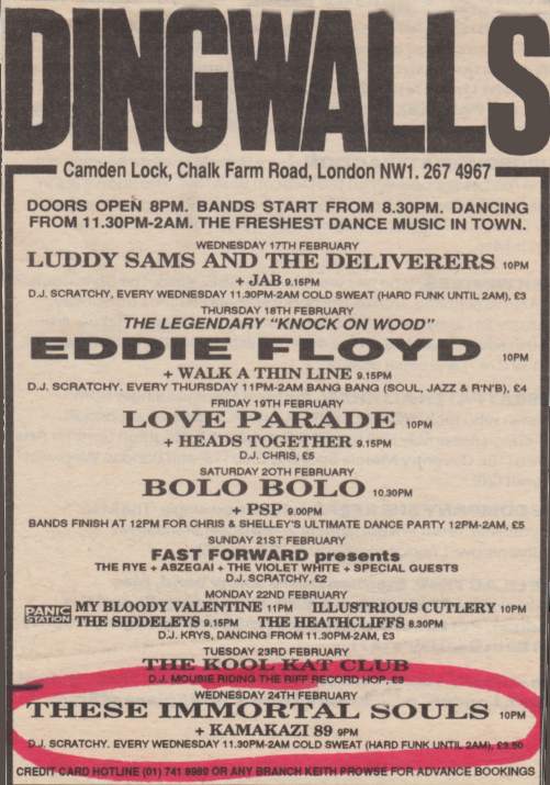10-Feb-88 Setlist: Marry Me (Lie! Lie!)/ These Immortal Souls/ Hey! Little Child [Alex Chilton]/ "Blood And Sand" She Said/ I Ate The Knife/ Swing For The Crime [The Saints]/ One In Shadow, One In Sun/ Hide/ ? |