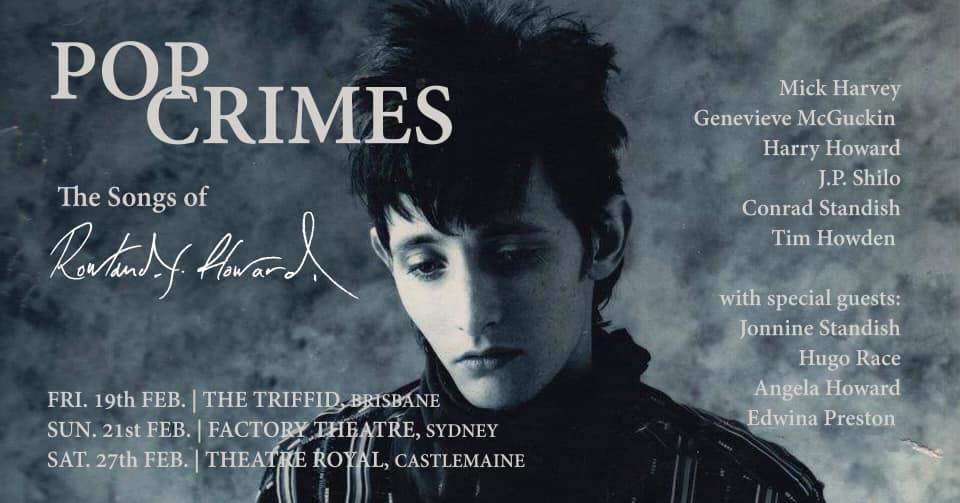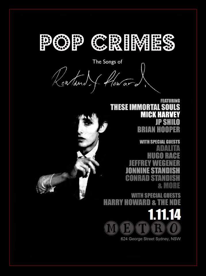 Note: First in the "Pop Crimes" tribute series. Event line-up: Mick Harvey (guitar,drums,vocals)/ Brian Henry Hooper (bass)/ Harry Howard (bass,vocals)/ Tim J.Howden (violin)/ Genevieve McGuckin (keyboards)/ Conrad Standish (vocals)/ Jonnine Standish (vocals)/ JP Shilo (guitar,vocals) and Craig Williamson (drums). Set times on "Stage One @ The Palais: The UV Race: 1.30pm – 2.15pm, The Twerps: 2.45pm – 3.45pm, Pop Crimes – The Songs of Rowland S. Howard: 4.15pm – 5.15pm, Television perform "Marquee Moon" album: 5.45pm – 6.45pm, The Scientists: 7.15pm – 8pm, Fuck Buttons: 8.25pm – 9.15pm and The Breeders perform "Last Splash" album: 9.45pm – 10.45pm.
