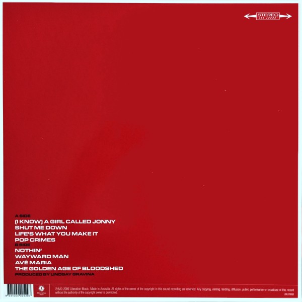 Recording info: Recorded @ Birdland studios, Melbourne-Prahran on 02-Apr-08 ("(I Know) A Girl Called Jonny") and during December 2008 ("Pop Crimes"). Engineered by Rob Long. Produced by Lindsay Gravina.