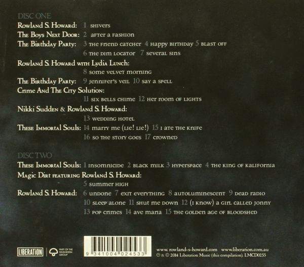Tracklist: CD1: Rowland S. Howard band: 1.Shivers/ The Boys Next Door: 2.After A Fashion/ The Birthday Party: 3.The Friend Catcher/ 4.Happy Birthday/ 5.Blast Off/ 6.The Dim Locator/ 7.Several Sins/ Lydia Lunch: 8.Some Velvet Morning/ The Birthday Party: 9.Jennifer's Veil/ 10.Say A Spell/ Crime and the City Solution: 11.Six Bells Chime/ 12.Her Room Of Lights/ Nikki Sudden: 13.Wedding Hotel/ These Immortal Souls: 14.Marry Me (Lie! Lie!)/ 15.I Ate The Knife/ 16.So The Story Goes/ 17.Crowned