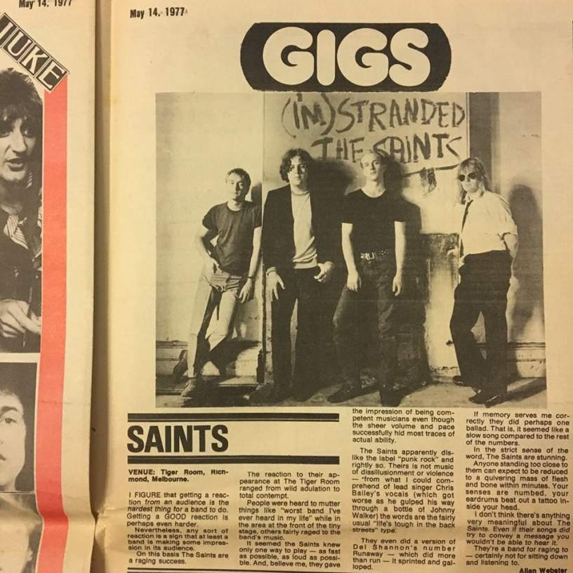 Note 1: "I saw the Saints for the first time in the mid 70s at the Miami Great Hall when they were backing LRB (Little River Band). [Chris Bailey] was on stage singing with the microphone in one hand and a bottle of Whisky in the other. Outrageous at the time and especially when it was in the grounds of Miami State High School." Kevin Rogers Facebook group 'Old Brisbane Album', April 2022. Little River Band were touring the USA in December 1976. Kevin Rogers must have meant AC/DC instead.