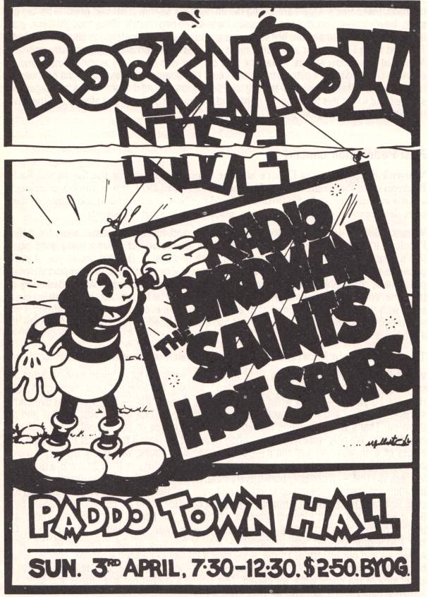 Note 1: "[The New Year's Eve] booking got us another, put on by the newly started Queensland FM Radio Station [4ZZZ (as 4ZZ-FM) first went to air on 08-Dec-75], about 500 people turned up, half of who walked out but those who stayed loved it. The guy who booked us was arrested for selling drugs and the guy who took over the station, hated us. So, after a few more moderately successful dates we decided to cut a record ourselves because the record companies didn't want to have anything to do with us." Ed Kuepper in Sniffin' Glue #4 - Punk zine, October 1976.