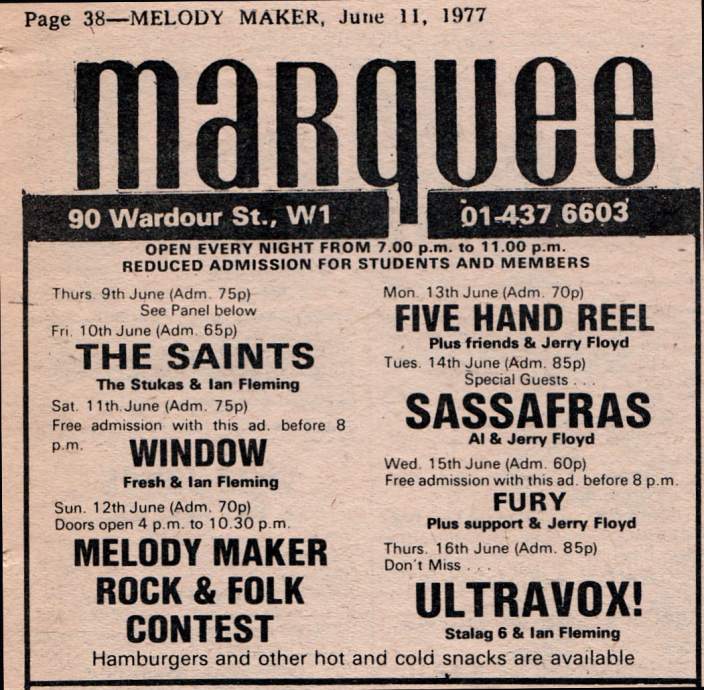 27-Nov-77 UK London,Marquee Club (@ 90 Wardour street)