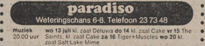 Note 2: "This was at the Queensland Uni. It was a large pool and we did a show, and it must've been a fundraiser or something for 4ZZZ, and it didn't end up all that well. With the exception of our fan club, who went to most of our shows, and there were maybe twenty of them, the audience responded very badly to the band, and a lot of fighting broke out between the potential Triple Z donors and Saints fans. It was an extreme response. I mean, I'd say that it was one of those nights where Chris... It didn't take much to provoke him. There was probably somebody in the audience that said something, which he took phenomenal exception to it. And it's quite possible that Chris was involved in some fisticuffs. So yeah, it was fairly chaotic. We didn't have a stage —we were set up on the grass beside the pool. The audience was at one with the band, really." Ed Kuepper interviewed by David Laing, published in Ugly Things mag #67 (Winter 2024).