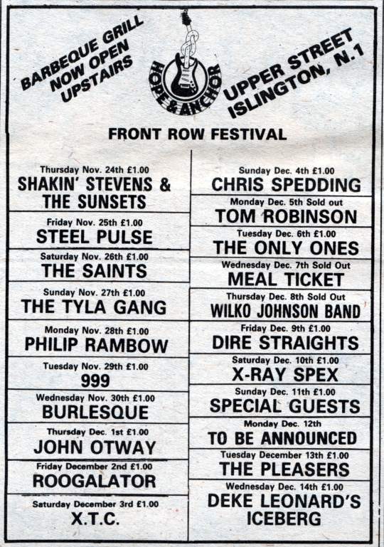 26-Nov-77 UK London-Islington,Hope & Anchor Club [with The Stranglers, 999, XTX, Tom Robinson Band, Only Ones, X-Ray-Spex,...] Front Row Festival
